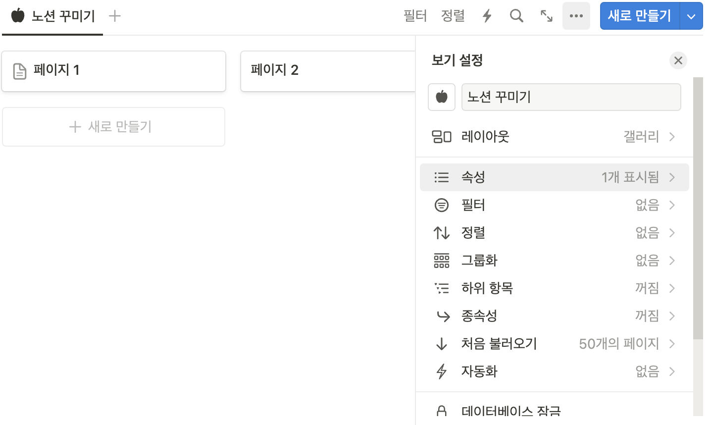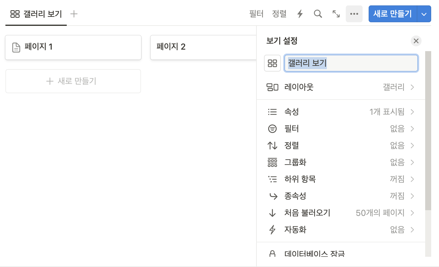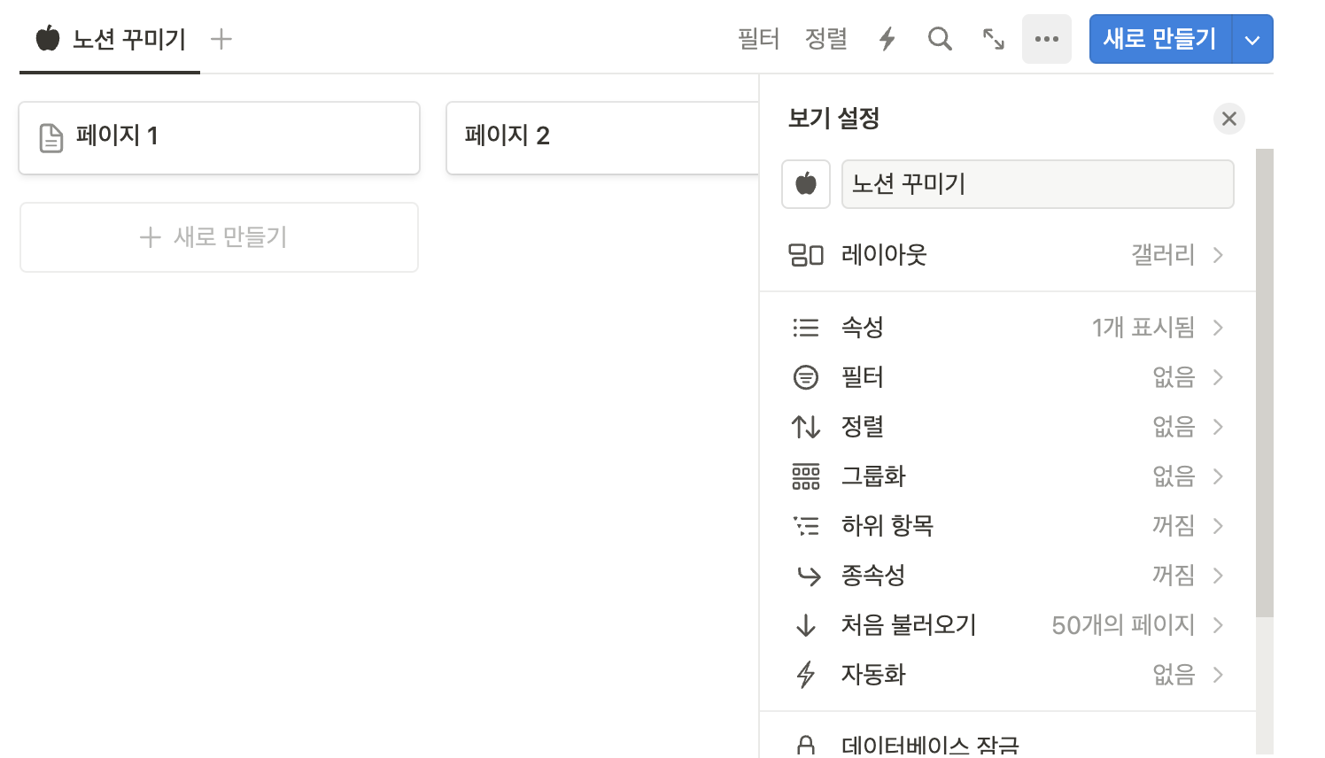오늘은 1) 보기의 제목 숨기기, 2)'갤러리 보기'부분 변경, 3) 태그 추가하기를 알려드릴게요.