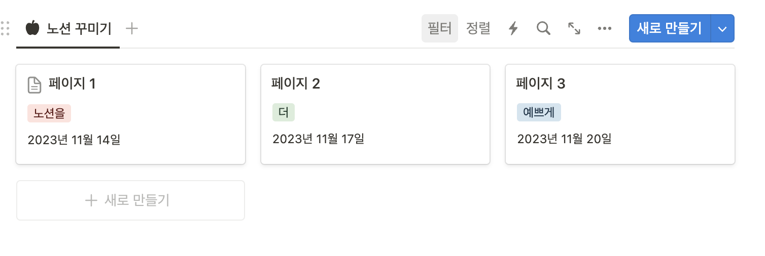 오늘은 노션 보드(갤러리)에서 필터 넣는 법을 적어보도록 할게요!